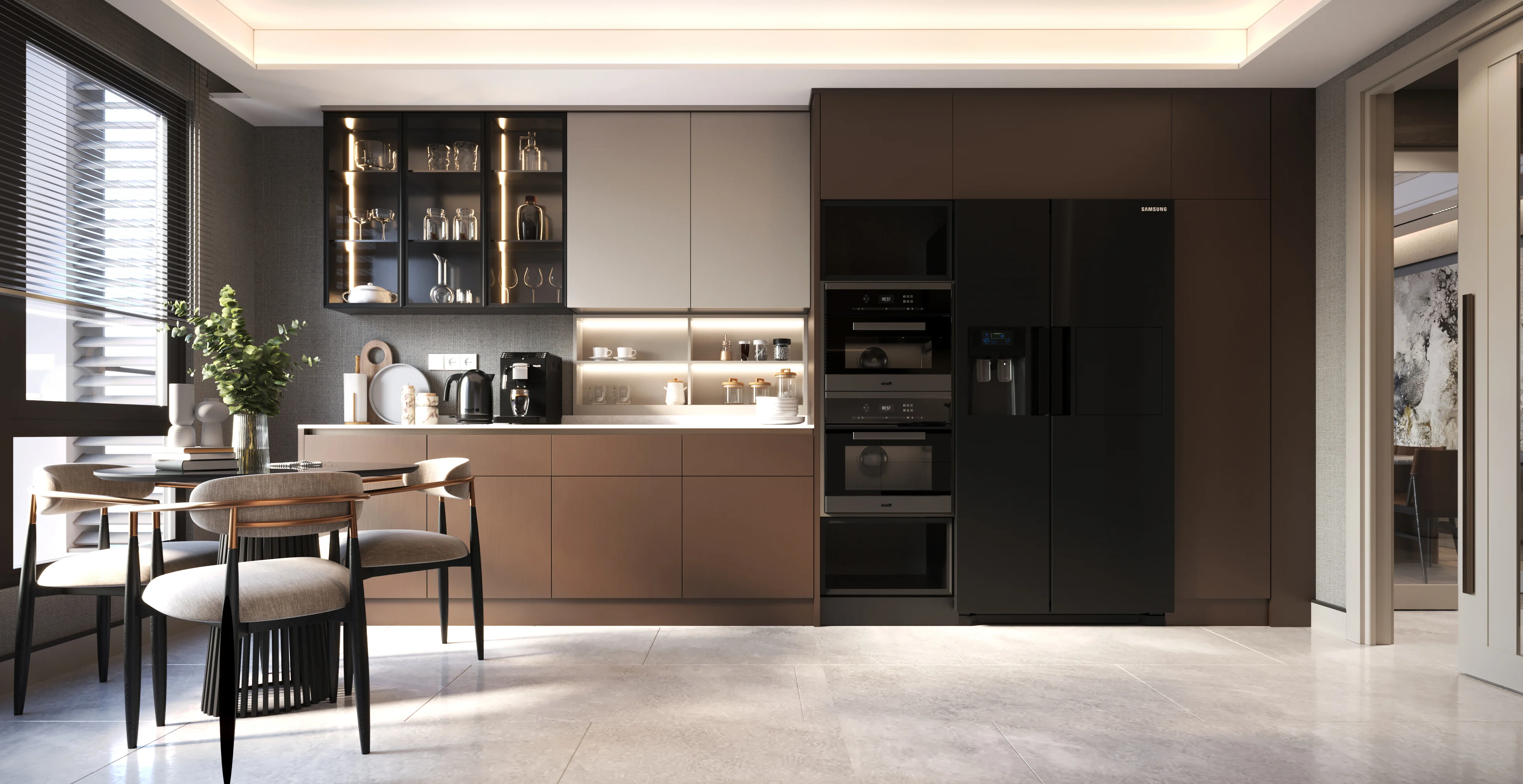 Yedi Vadi Evleri mutfakları, hem estetik hem de fonksiyonel çözümler sunar. Geniş tezgahlar, modern dolap sistemleri ve ergonomik yerleşimlerle yemek yapmak artık bir keyif.